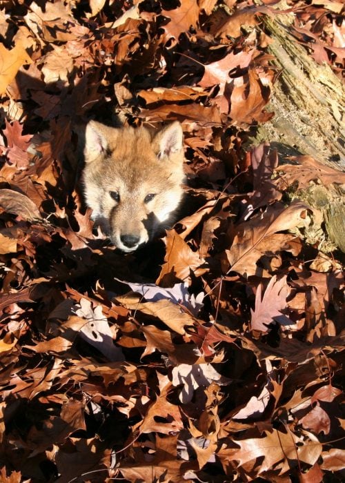 puppy in leaves